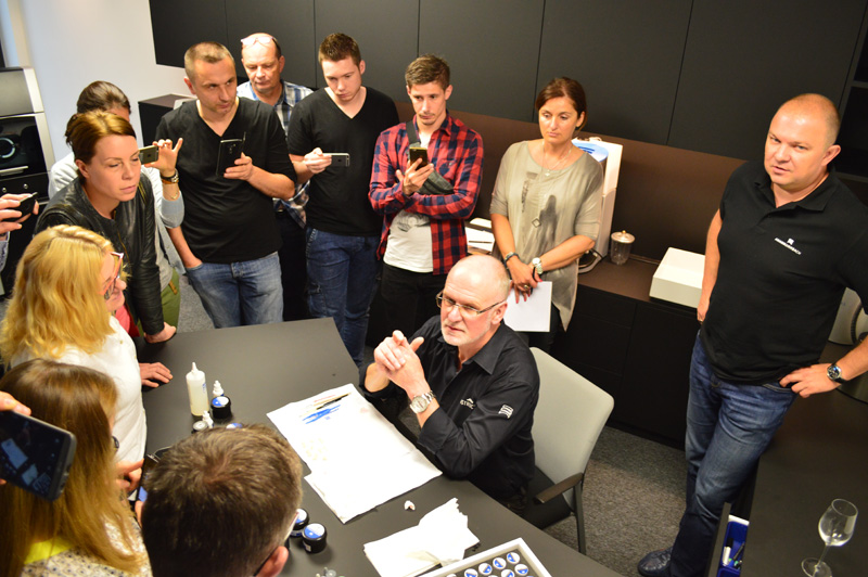 Pierwszego dnia szkoleniowego zostało zaprezentowane nowe oprogramowanie do wykonywania protez całkowitych oraz koloryzacji Zolidu. Oprócz tego przedstawiony został nowy uchwyt do skanowania modeli bez używania systemu Splitex.